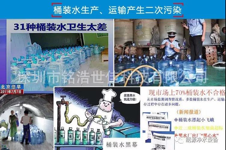 有些桶裝水說是天然礦物質(zhì)水,但經(jīng)調(diào)查發(fā)現(xiàn)水源周邊全是垃圾;有些說是礦物質(zhì)水,但發(fā)現(xiàn)竟是自來水等等。有關(guān)桶裝水的水源質(zhì)疑不斷,很難保證水質(zhì)。